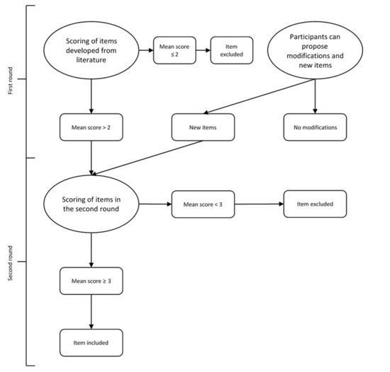 A flowchart of the results of the Delphi process is shown in Figure 2.