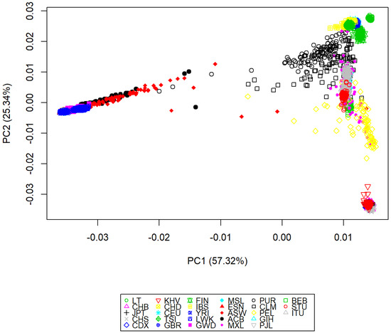 - Patterson, N.; Price, A.L.; Reich, D. Population Structure and Eigenanalysis. PLoS Genet. 2006, 2, e190. [Google Scholar] [CrossRef] [PubMed]