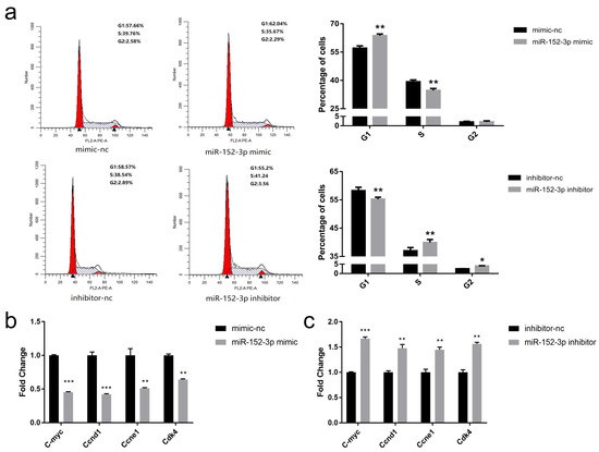 3.3. miR-152-3p Represses the Cell Cycle of MTEC1 Cells