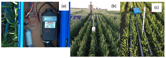 A 2 kW diesel plot heater (Belief, Diesel Heat, TAS Australia) housed in a waterproof case (a); the weather station (dataTaker DT50-S3, Lontek, NSW, Glenbrook, Australia) which recorded humidity (Vaisala Humitter 110 with a Humicap sensor, Lontek, NSW, Glenbrook, Australia) and canopy air temperature (T-type, Temperature Controls Pty. Ltd., Sydney, NSW, Australia) in non-heated and heated plots and activated the heater (b); the unshielded thermocouples which measured canopy air temperature and the heated plot area of wheat (cv. Wyalkatchem) (c).