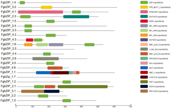 2.3. Gene Structure Analysis and Chromosomal Distribution of FgbZIP Genes