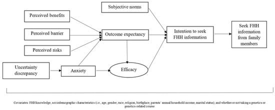 Figure 1. Proposed integrated theoretical model of FHH information seeking behavior among young adults. FHH: family health history.