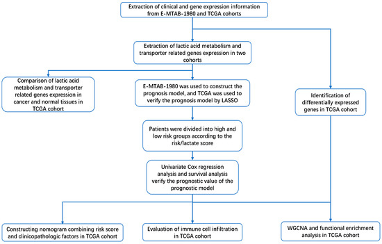 In this study, we used lactic acid metabolism and transporter related genes to construct a prognostic model, which is closely related to the survival and prognosis of patients. We found that the infiltration of immune cells in two risk groups is different. Finally, we also found that the underlying mechanism of this model to predict prognosis is related to the cell cycle signaling pathway. The workflow of this study is shown in Figure 1.