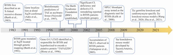 - Taylor, C.; Rao, E.S.; Pierre, G.; Chronopoulou, E.; Hornby, B.; Heyman, A.; Vernon, H.J. Clinical presentation and natural history of Barth Syndrome: An overview. J. Inherit. Metab. Dis. 2021, 45, 7–16. [Google Scholar] [CrossRef] [PubMed]