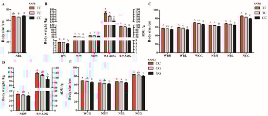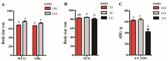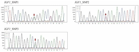 3.3.1. Effects of SNP Genotypes in IGF1 on Growth Traits