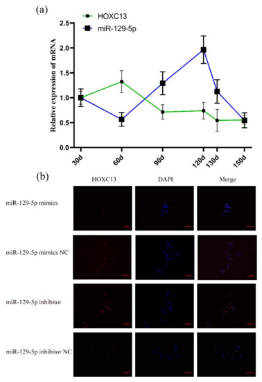 APA StyleYao, F., Zhao, B., Hu, S., Bai, S., Jin, R., Zhang, C., Chen, Y., & Wu, X. (2022). miR-129-5p Participates in Hair Follicle Growth by Targeting HOXC13 in Rabbit. Genes, 13(4), 679. https://doi.org/10.3390/genes13040679