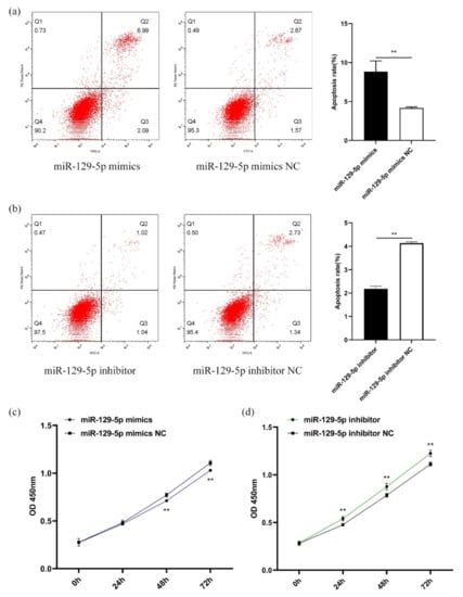 3.4. MiR-129-5p Enhances Apoptosis and Inhibits Proliferation of DPCs