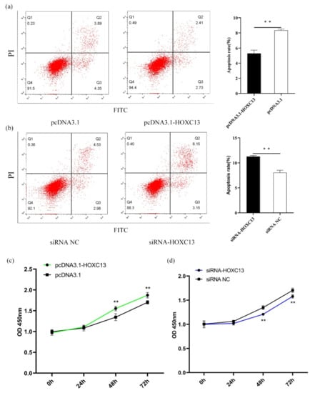3.5. HOXC13 Inhibits Apoptosis and Enhances the Proliferation of DPCs