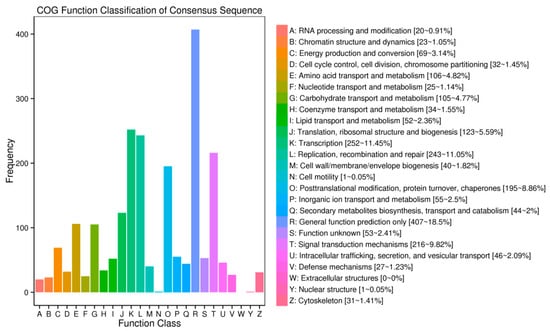 Cluster of genes (COG) classifications of host-genes (protein-based genes) of circRNAs.