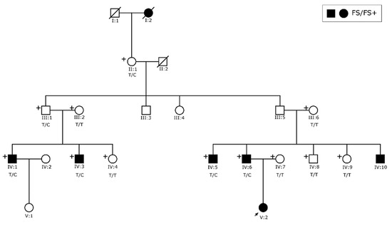 For Family 167 (Figure 2), the pedigree structure for five generations was constructed. Clinical and genetic data were available for family members up to three generations. Affected individuals in this family all presented with FS or FS+.