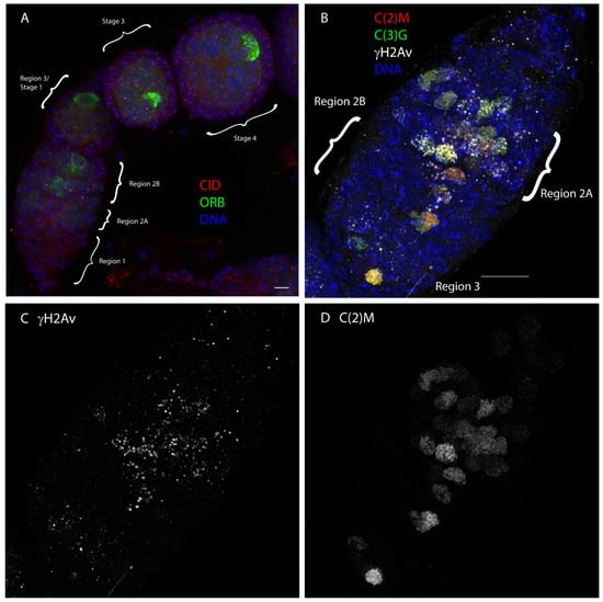- Lake, C.M.; Holsclaw, J.K.; Bellendir, S.P.; Sekelsky, J.; Hawley, R.S. The development of a monoclonal antibody recognizing the Drosophila melanogaster phosphorylated histone H2A variant (γ-H2AV). G3 Genes Genomes Genet. 2013, 3, 1539–1543. [Google Scholar]