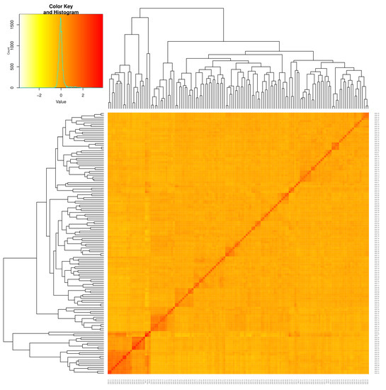 - Shin, J.H.; Blay, S.; McNeney, B.; Graham, J. LDheatmap: An R function for graphical display of pairwise linkage disequilibria between single nucleotide polymorphisms. J. Stat. Softw. 2006, 16, 1–10. [Google Scholar] [CrossRef] [Green Version]