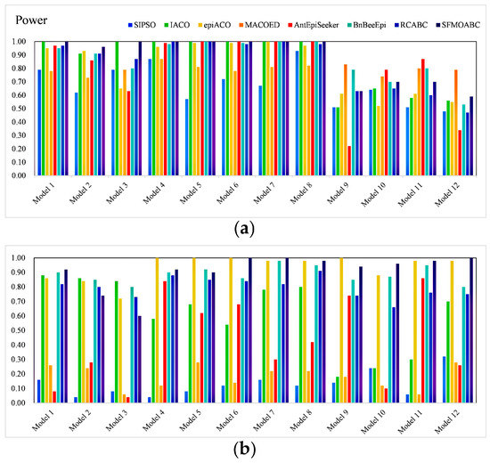 To avoid the one-sidedness of using a single evaluation indicator, two evaluation indicators, Power and F-measure [17], were used to evaluate the performance of the epistasis detection methods. Power is a measure of the ability to detect pathogenic models in all datasets; it can be expressed as