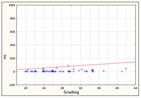 Correlation between miRNA-143 and grading in patients. RQ—relative quantification.