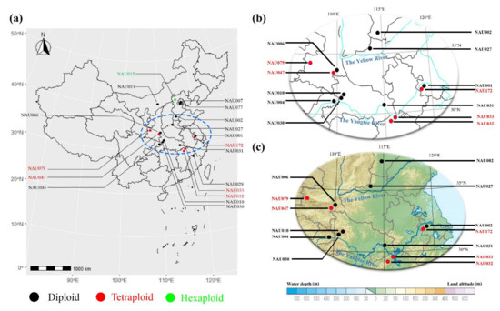 | NAU006 | C. potentilloides | Tianzhushan, Shaanxi | 2 | 9 | 2n = 2x = 18 | He et al. [5] |
