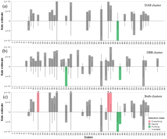 - Kosakovsky Pond, S.L.; Frost, S.D.W. Not so different after all: A comparison of methods for detecting amino acid sites under selection. Mol. Biol. Evol. 2005, 22, 1208–1222. [Google Scholar] [CrossRef]