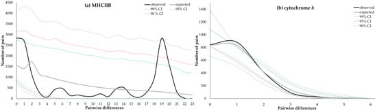 - Slade, J.W.G.; Watson, M.J.; MacDougall-Shackleton, E.A. “Balancing” balancing selection? Assortative mating at the major histocompatibility complex despite molecular signatures of balancing selection. Ecol. Evol. 2019, 9, 5146–5157. [Google Scholar] [CrossRef]