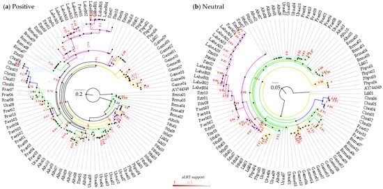 - Anisimova, M.; Gascuel, O. Approximate likelihood-ratio test for branches: A fast, accurate, and powerful alternative. Syst. Biol. 2006, 55, 539–552. [Google Scholar] [CrossRef] [PubMed]