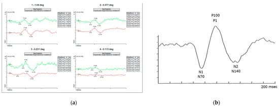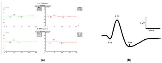 - Sharma, R.; Joshi, S.; Singh, K.D.; Kumar, A. Visual evoked potentials: Normative values and gender differences. J. Clin. Diagnostic Res. 2015, 9, 12–15. [Google Scholar] [CrossRef] [PubMed]