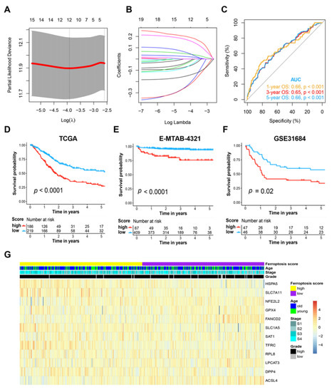 3.3. Evaluation of the Ferroptosis-Related Prognosis Model