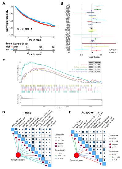 - Liu, Z.; Zhao, Q.; Zuo, Z.X.; Yuan, S.Q.; Yu, K.; Zhang, Q.; Zhang, X.; Sheng, H.; Ju, H.Q.; Cheng, H.; et al. Systematic Analysis of the Aberrances and Functional Implications of Ferroptosis in Cancer. iScience 2020, 23, 101302. [Google Scholar] [CrossRef] [PubMed]