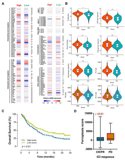 3.5. Tumor Immunity-Related Pathways Were Associated with the Ferroptosis Score in BCa