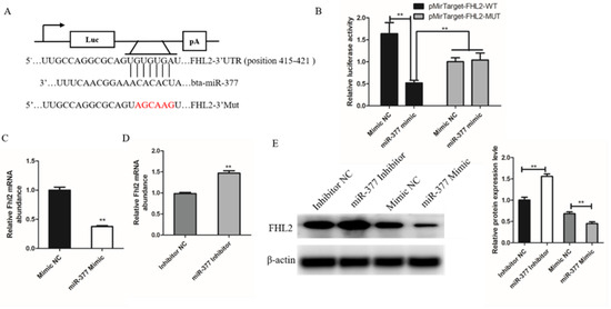 3.4. miR-377 Directly Target FHL2 and Inhibit Its Expression