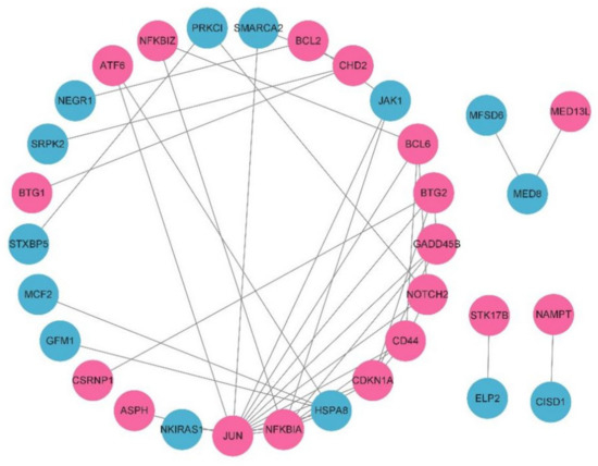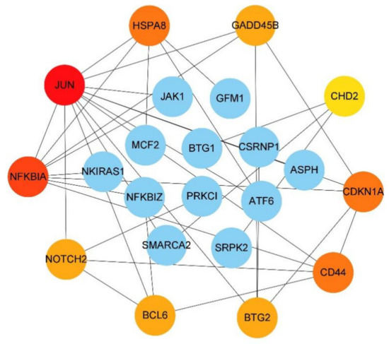 2.4. Analysis of the Protein–Protein Interaction (PPI) Network and Hub Genes