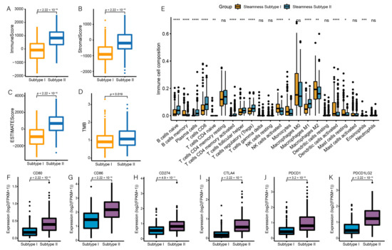 2.6. Evaluation of the Relationship between Stemness Subtypes and Immune Infiltration