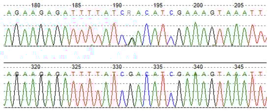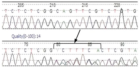 NGS analysis revealed the presence of a novel 7bp frameshift deletion c.373_379delCAGTTCG in the exon 4 of the LDLR gene in two siblings. The lipid parameters of the elder, 10-year-old, brother (patient 7b) showed severe hypercholesterolemia with significantly elevated total cholesterol and LDL cholesterol levels, these being 426 mg/dL and 348 mg/dL, respectively. The younger, five-year-old, sister (patient 7a) also demonstrated elevated TC (278 mg/dL) and LDL cholesterol levels (170 mg/dL). The performed in silico analysis classified the c.373_379delCAGTTCG variant as possibly pathogenic. The predicted consequences of 7bp deletion, with Gln125Ser at the first amino acid change, is the formation of a defective transcript and induction of a nonsense-mediated mRNA decay mechanism (NMD). Looking more closely at the deleted nucleotides and their flanking sequences, 3 bp directed repeats can be observed (Figure 2). The cause of the aberration may be the presence of specific deletion and repeat localizations, as described in the slipped mispairing hypothesis [].