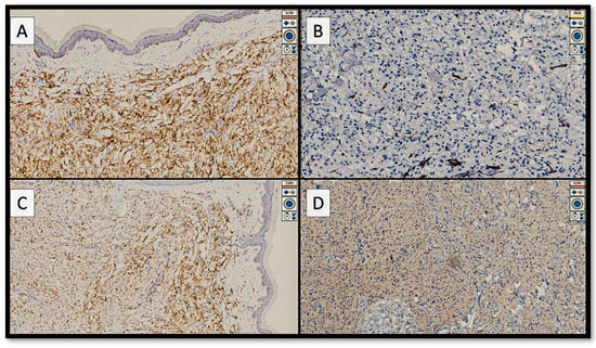 - Ueberschaar, S.; Goebeler, M.; Kneitz, H. CD10-Positive Cutaneous PEComa: An Extremely Rare Skin Tumour. Case Rep. Dermatol. 2020, 12, 192–198. [Google Scholar] [CrossRef]