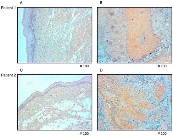 HNSCC clinical specimens displayed moderate immunoreactivity in the cytoplasm (Figure 11B,D), whereas normal epithelium showed no expression of FOXD1 (Figure 11A,C). The clinical features of HNSCC specimens are summarized in Table S3.