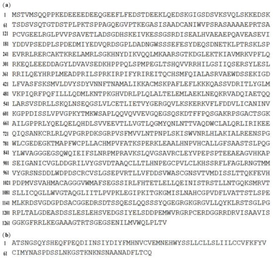 Comparison of amino acid sequences of RhoGEF10 in males and females (Supplementary File S2). Note: (a): Amino acids of RhoGEF10 in female individuals; (b): Amino acids of RhoGEF10 in male individuals.