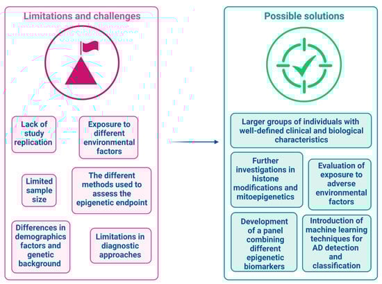 Use of epigenetic peripheral biomarkers for early diagnosis of AD: main limitations, challenges and possible solutions.
