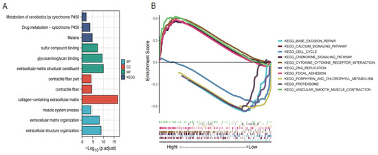 Functional annotations of DEGs. (A) GO and KEGG functional enrichment of DEGs. (B) GSEA for significantly enriched pathways.
