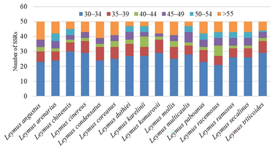 Number of SSRs in the chloroplast genomes of 16 Leymus species.