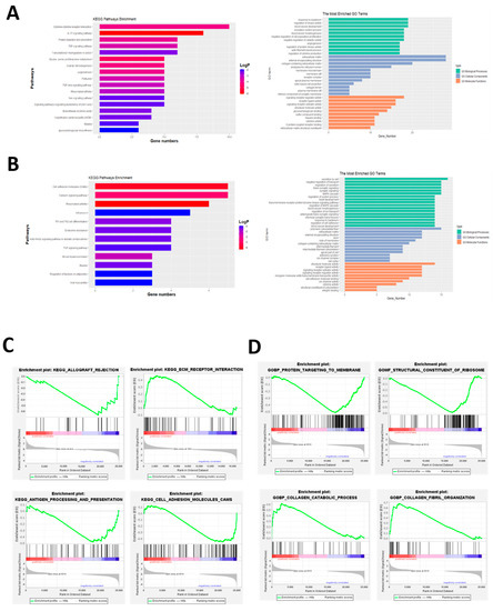 RNA-seq differential gene enrichment analysis identified pathways significantly altered by NR2F2. (A) KEGG and GO enrichment pathways of up-regulated genes. (B) KEGG and GO enrichment pathways of down-regulated genes. (C) KEGG analysis of GSEA. (D) GO analysis of GSEA.