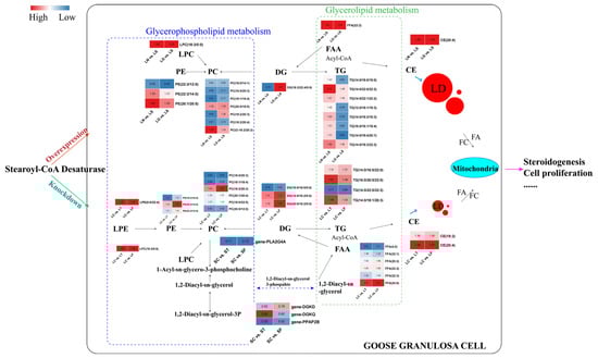 - Yuan, X.; Hu, S.; Li, L.; Han, C.; Liu, H.; He, H.; Xia, L.; Hu, J.; Hu, B.; Ran, M.; et al. Lipidomics profiling of goose granulosa cell model of stearoyl-CoA desaturase function identifies a pattern of lipid droplets associated with follicle development. Cell Biosci. 2021, 11, 95. [Google Scholar] [CrossRef]