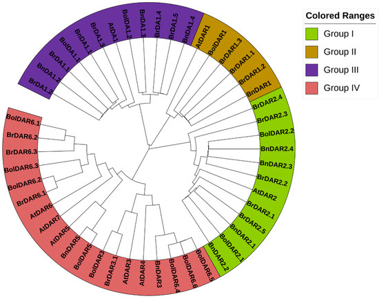 3.2. Phylogenetic Relationships of BrDA1&DAR Genes