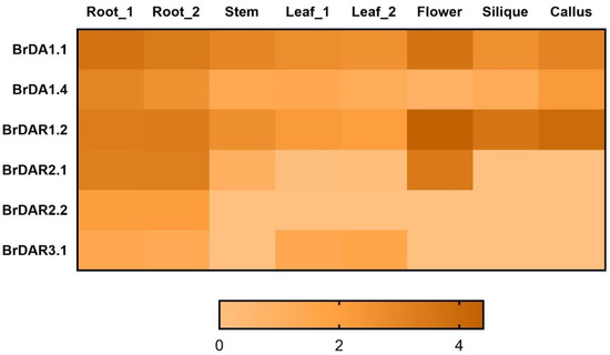 2.5. Expression Profiling of BrDA1&DAR Genes in Various Tissues