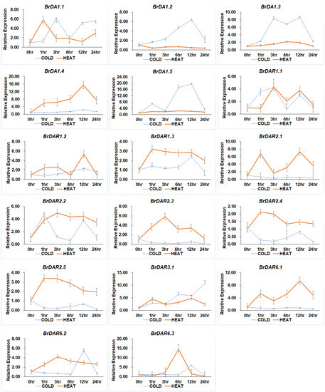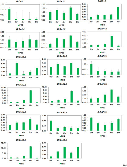 3.7. Expression Profiling of BrDA1&DAR Gene Family