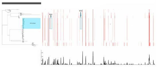 - Didelot, X.; Wilson, D.J.; ClonalFrame, M.L. Efficient inference of recombination in whole bacterial genomes. PLoS Comput. Biol. 2015, 11, e1004041. [Google Scholar] [CrossRef]