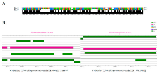 3.3. Comparison of the Virulence Genes Distribution between KL47 and KL64