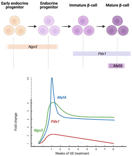 - Zhu, Y.; Liu, Q.; Zhou, Z.; Ikeda, Y. PDX1, Neurogenin-3, and MAFA: Critical Transcription Regulators for Beta Cell Development and Regeneration. Stem Cell Res. Ther. 2017, 8, 240. [Google Scholar] [CrossRef] [PubMed]