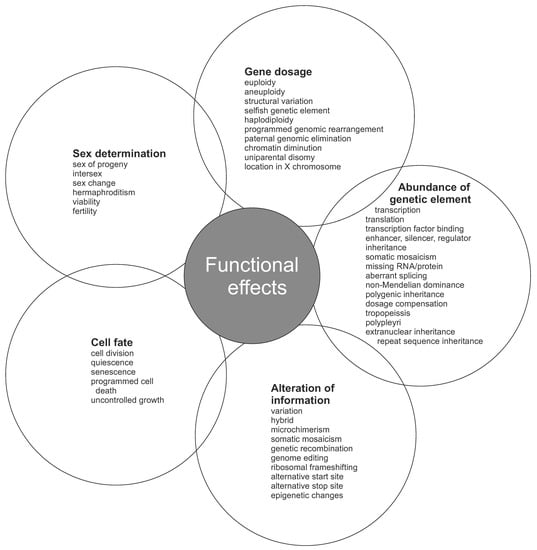 Variations at population level are excluded. Population level concepts, such as mode of reproduction, types of fertilization, pregnant sex, type of breeder, mate choice, mating systems, and interindividual genetic conflicts are not covered here. Mechanisms that produce variations are also excluded apart from some notes, for recent reviews see [6,7]. The goal of the presentation is to synthesize knowledge and insight in individual genetic heterogeneity and to organize and systematize the central concepts.