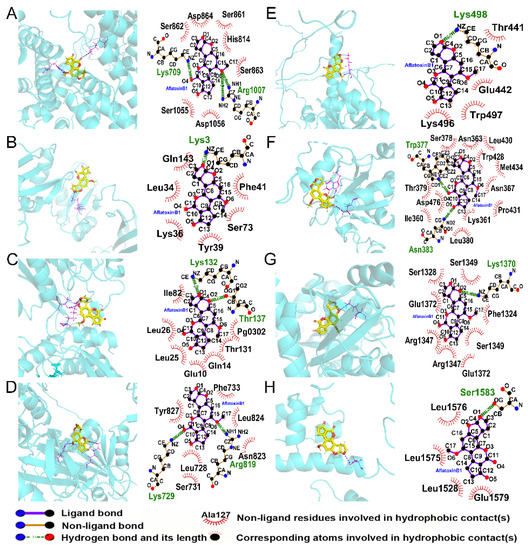 The interactions between AFB1 and m6A regulators were predicted and shown in Table 2 and Figure 10. Theoretically, AFB1 bound to regulators by hydrogen bonds and hydrophobic contacts. All the total scores except ZC3H13 were higher than 5, indicating that most of these proteins could form stable and direct interactions with AFB1.