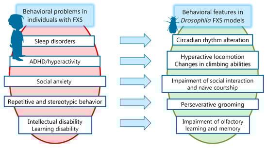 - Santos, A.R.; Kanellopoulos, A.K.; Bagni, C. Learning and behavioral deficits associated with the absence of the fragile X mental retardation protein: What a fly and mouse model can teach us. Learn. Mem. 2014, 21, 543–555. [Google Scholar] [CrossRef] [PubMed]