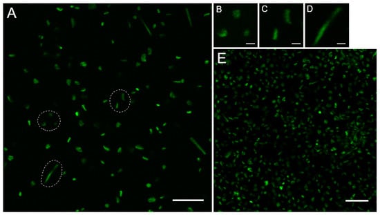 - Bi, E.; Lutkenhaus, J. FtsZ ring structure associated with division in Escherichia coli. Nature 1991, 354, 161–164. [Google Scholar] [CrossRef] [PubMed]