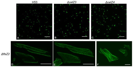 3.2. Deletion of ftsZ-cetZ Family Genes Causes Morphological Changes during Biofilm Development
