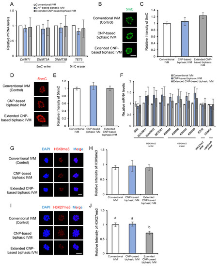 - Racedo, S.E.; Wrenzycki, C.; Lepikhov, K.; Salamone, D.; Walter, J.; Niemann, H. Epigenetic modifications and related mRNA expression during bovine oocyte in vitro maturation. Reprod. Fertil. Dev. 2009, 21, 738–748. [Google Scholar] [CrossRef]